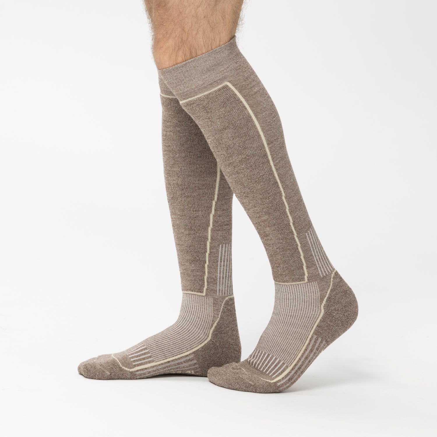 This ski sock is far more than just a functional accessory. Well thought out down to the last detail, they offer targeted padding on the shin, ankle and foot for the best protection on the slopes. The ergonomic fit wraps around the leg up to the calf without pinching. Whether you're carving or standing on the lift, your feet stay dry, warm and optimally supported. A particular highlight is that this sock is fully compostable. A rare luxury that perfectly combines comfort and environmental awareness.