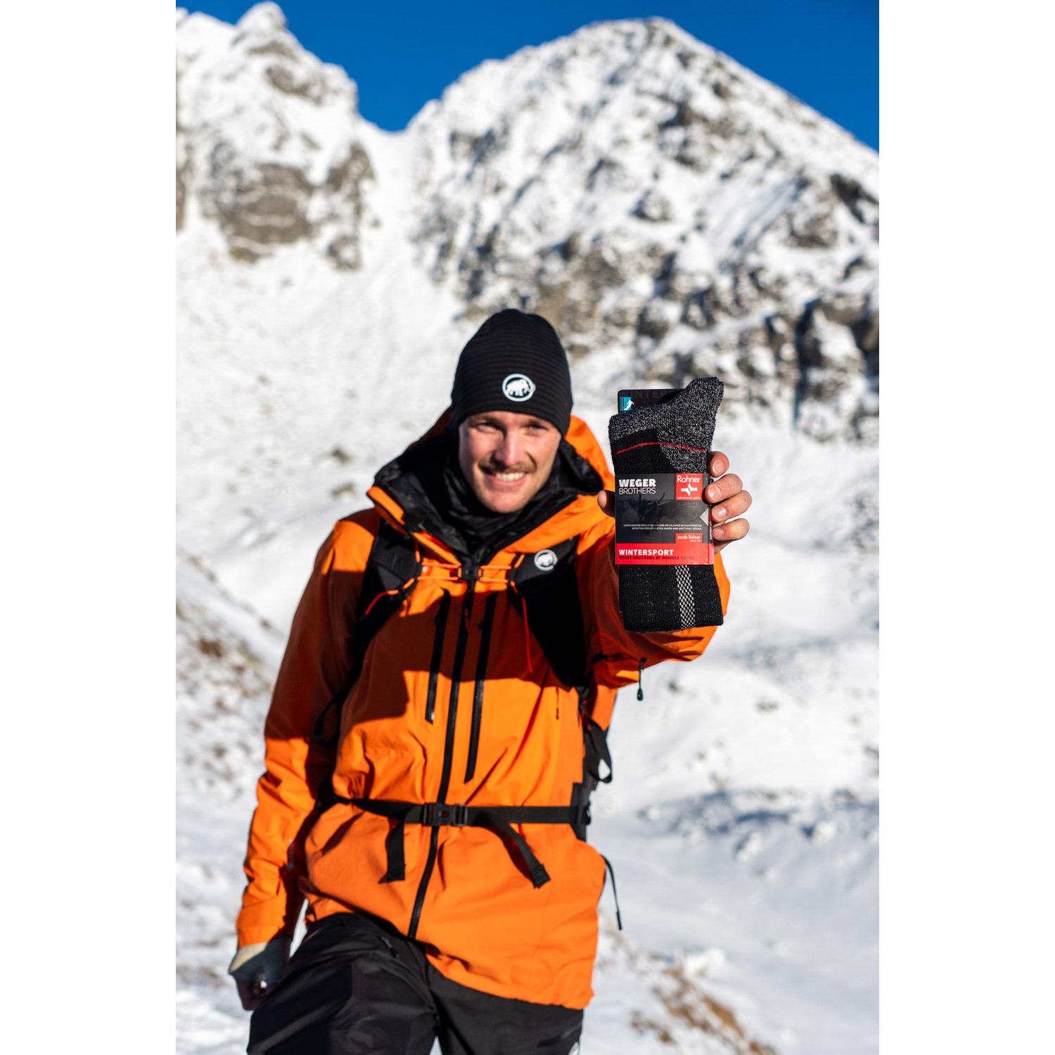 Diese Ski-Allmountain Socke wurde gemeinsam mit den Profi-Athleten Jakob und Matthias Weger entwickelt. Zwei Experten für Skiabenteuer im verschneiten Gebirge. Die hochentwickelte Socke überzeugt durch ihre durchdachte Konstruktion. Das dünne Fussbett ermöglicht eine optimale Kraftübertragung. Gleichzeitig sorgen die atmungsaktiven Materialien für ein angenehmes Fussklima. Dadurch geniessen Sie höchsten Fusskomfort bei jedem Anstieg und bei jeder Abfahrt auf der Piste, bei Skitouren oder beim Freeriden.
